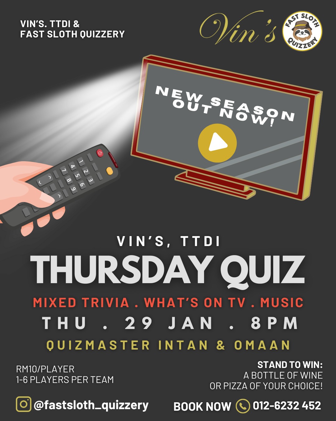 Thursday Quiz π Thursday, 29 January π π Vin’s, TTDIβ¦